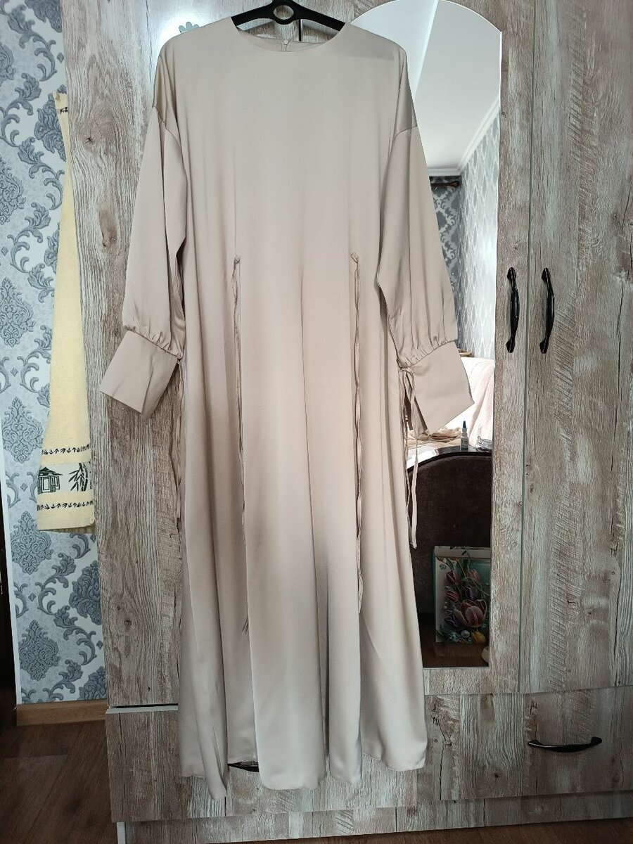 Платье оверсайз, подстраивается под любую фигуру за счёт завязак на боках и рукавах . Очень нежное и красивое . Надевала один раз
