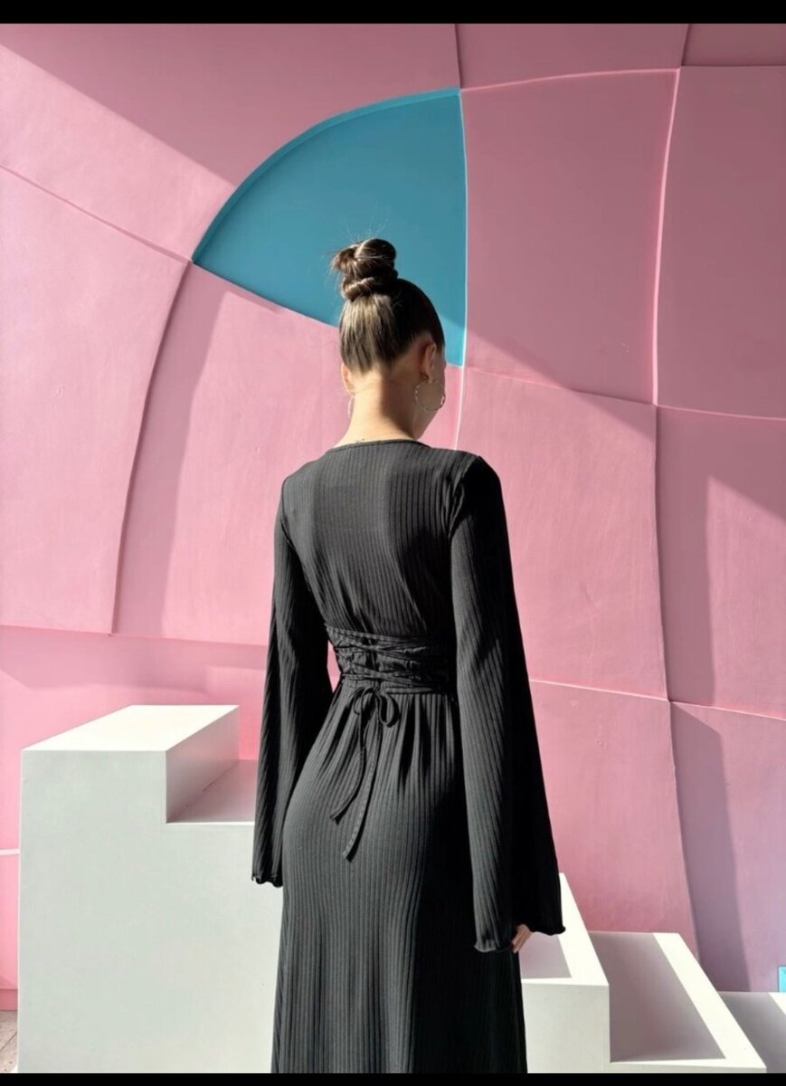 Черное платье на завязках в отличном состоянии почти как новое с идеальной посадкой