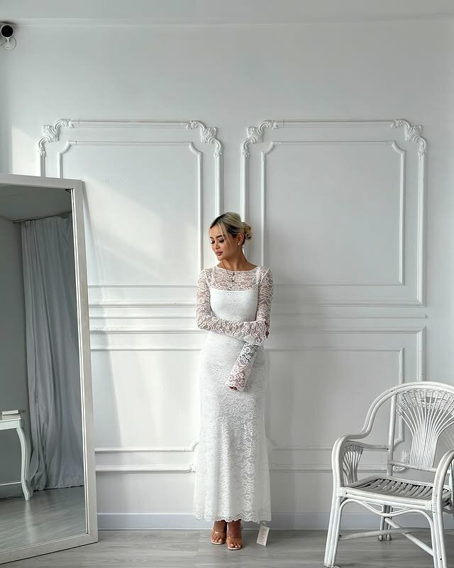 Белая кружевная двойка платье