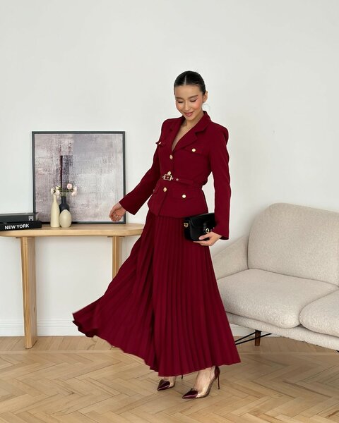 Нежная двойка, состоящая из юбки плиссе и пиджака