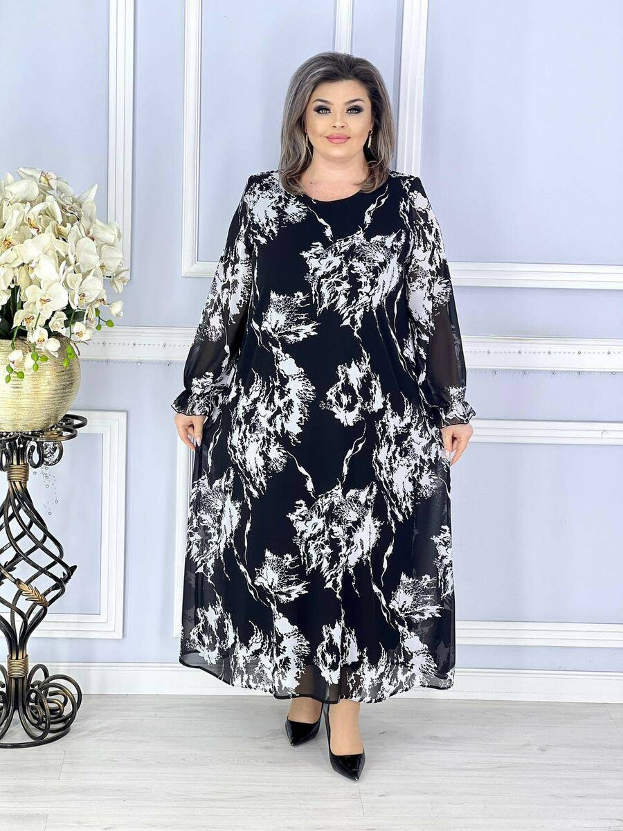 Ткань креп шифон На подкладе хб Размеры 54-56-58-60 Цвет:черный мрамор принт