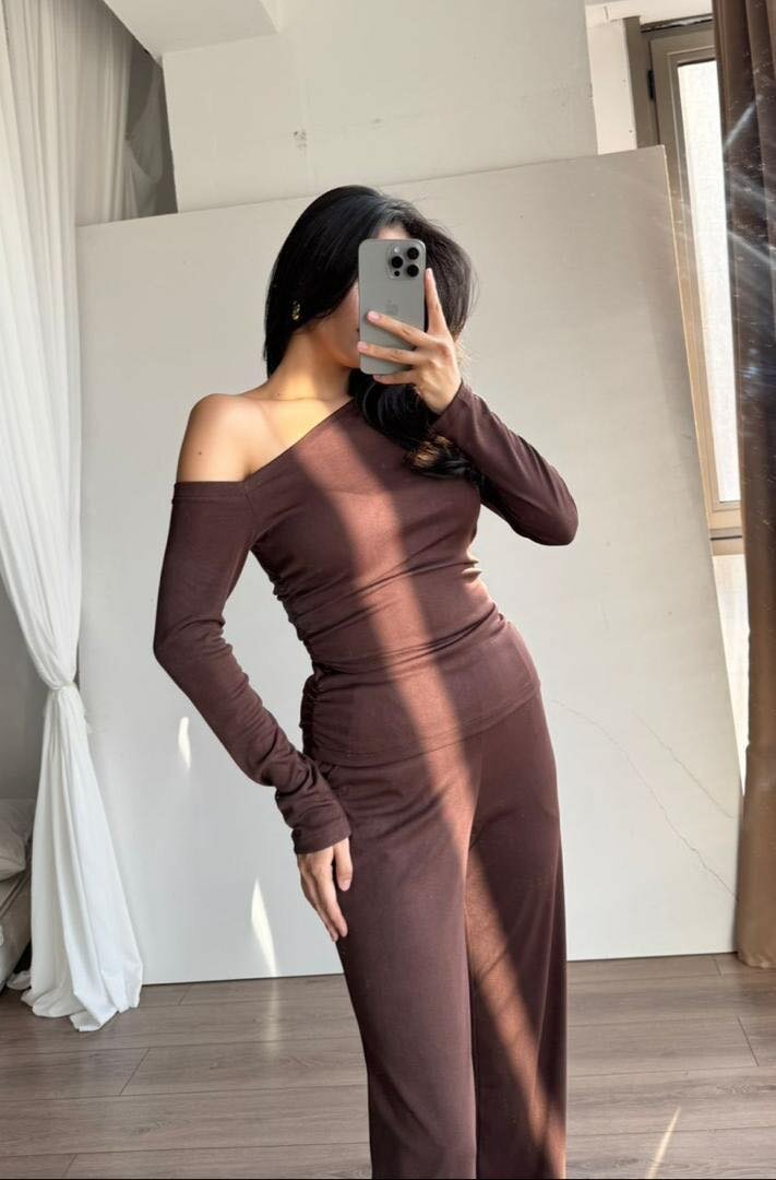 New Стильная двойка с открытым плечом в наличии️ Можно надевать раздельно,комбинируя под гардероб Размер :SSMM Цвета:серый,шоколад,черный Качество 10/10000