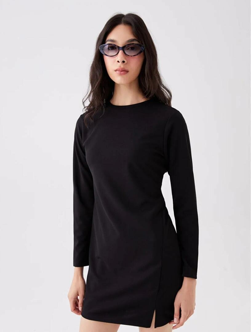 Платье черное, короткое с маленьким размером на бедре,плотность ткани средняя, размер м пойдёт и на л.Доставка бесплатная .