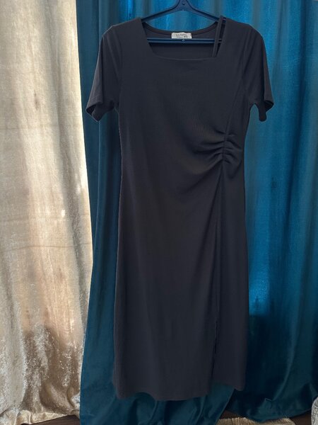 Платье новое, трикотажное, в сером и черном цвете. Размер 48-50