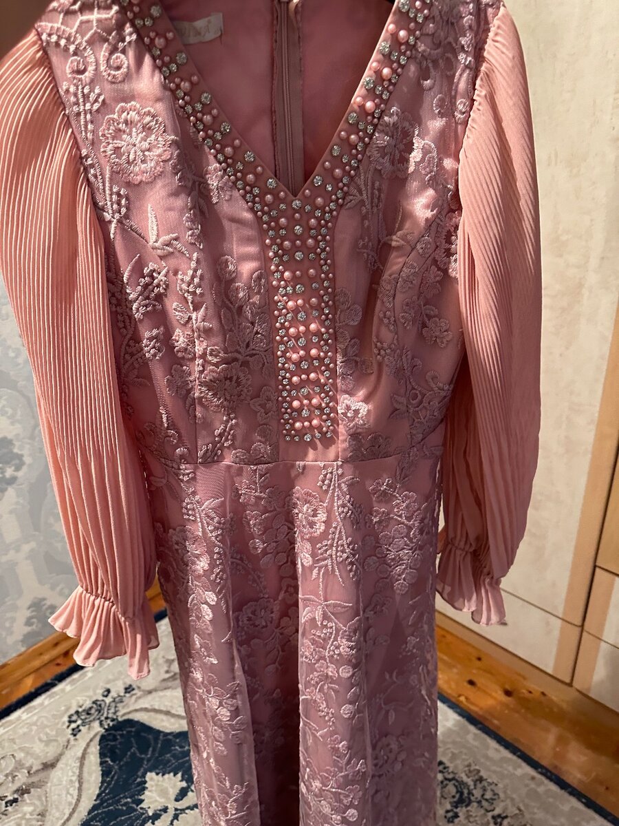 Надевала один раз, производство: Турция, покупали за 10 000 (розовое: длина французская, голубое и бежевое - длина в пол)