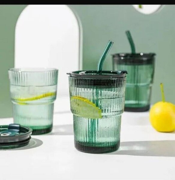 Gorgous Stripped Glass Tumbler with Splash-Proof Lid and Reusable Straw