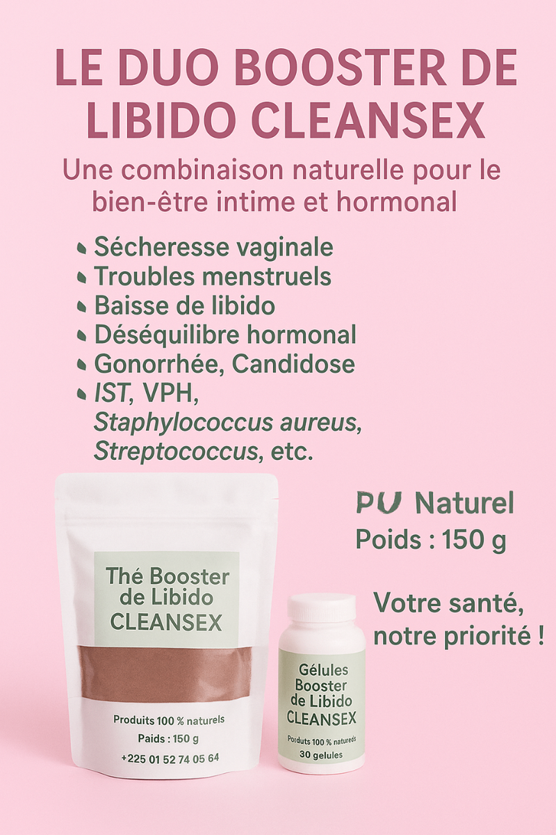 Améliorez votre bien-être intime et hormonal avec le duo 100% naturel de Cleansex. Un soutien pour lutter contre la sécheresse vaginale, les troubles menstruels, et bien plus. Ingrédients naturels pour votre santé en priorité.