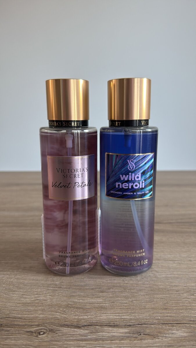 Découvrez le duo de brumes Victoria's Secret : Velvet Petals et Wild Neroli. Parfaits pour envelopper votre peau d'un voile parfumé unique et séduisant. Idéal pour une utilisation quotidienne ou pour ajouter une touche de fraîcheur. Appréciez un parfum sophistiqué et irrésistible.