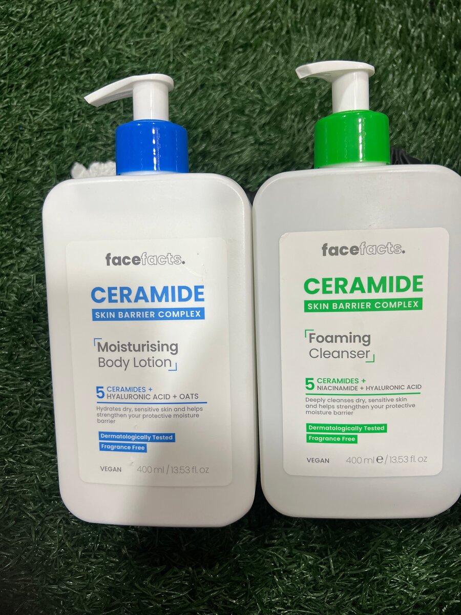 Découvrez le duo idéal de soins visage Face Facts : une lait hydratante et un nettoyant moussant riches en céramides pour un teint revitalisé. Convient à tous types de peau, testé dermatologiquement et sans parfum.