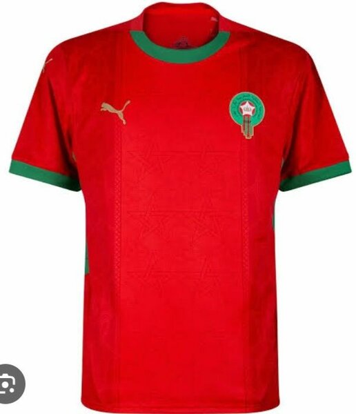 Duo de maillots Maroc (blanc + rouge) officiels, tailles M à 2XL. Matière respirante 100% polyester, coupe confortable idéale pour supporteurs, sportifs, ou usage quotidien. État neuf.