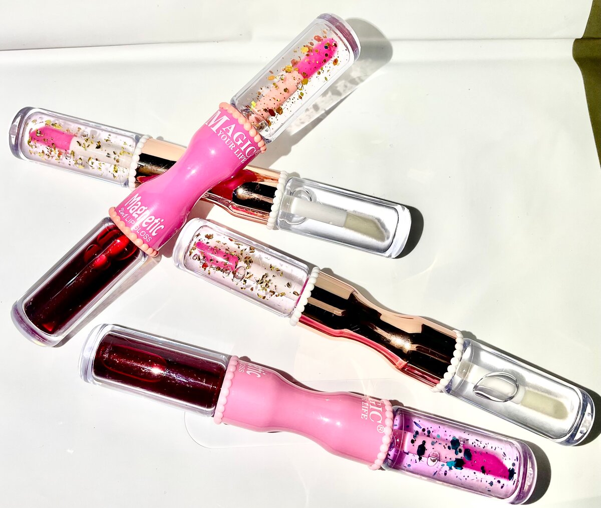 Découvrez le duo de rouges à lèvres magique avec paillettes flottantes. Couleurs vibrantes, application lisse, parfait pour un look éblouissant au quotidien ou en soirée.