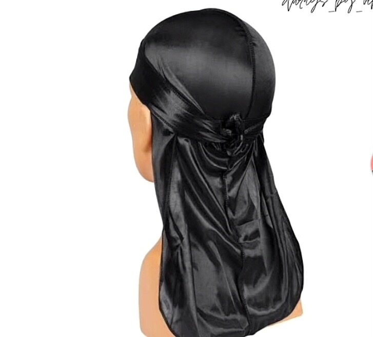 Élégant durag en satin noir pour un look stylé et un soin optimal des cheveux. Idéal pour protéger vos cheveux la nuit ou pour un effet mode unique en journée. Confortable et ajustable pour tous.