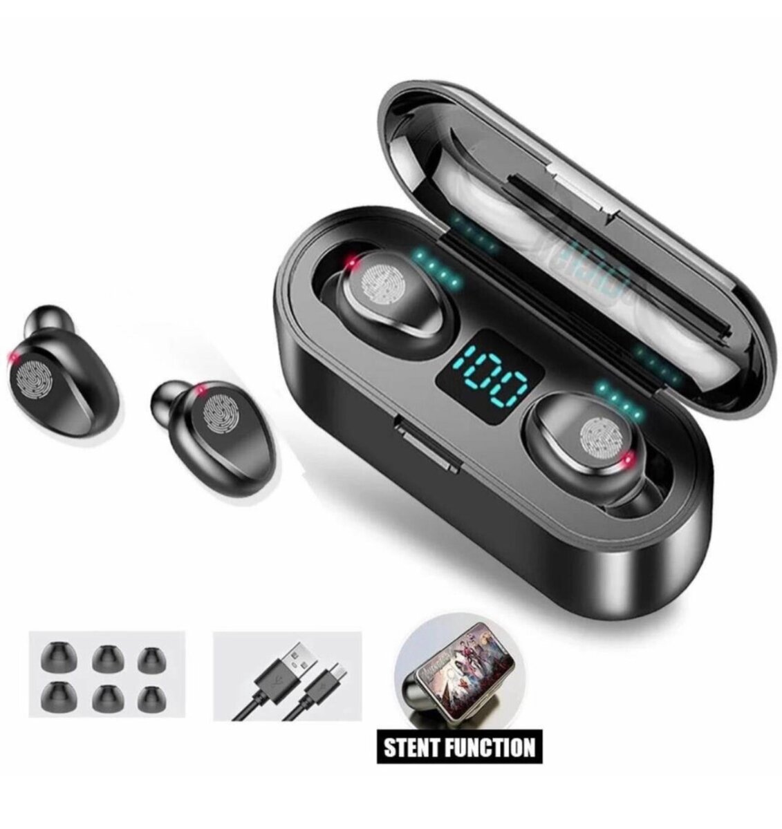 Bluetooth earbuds with PowerBank F9 Black
