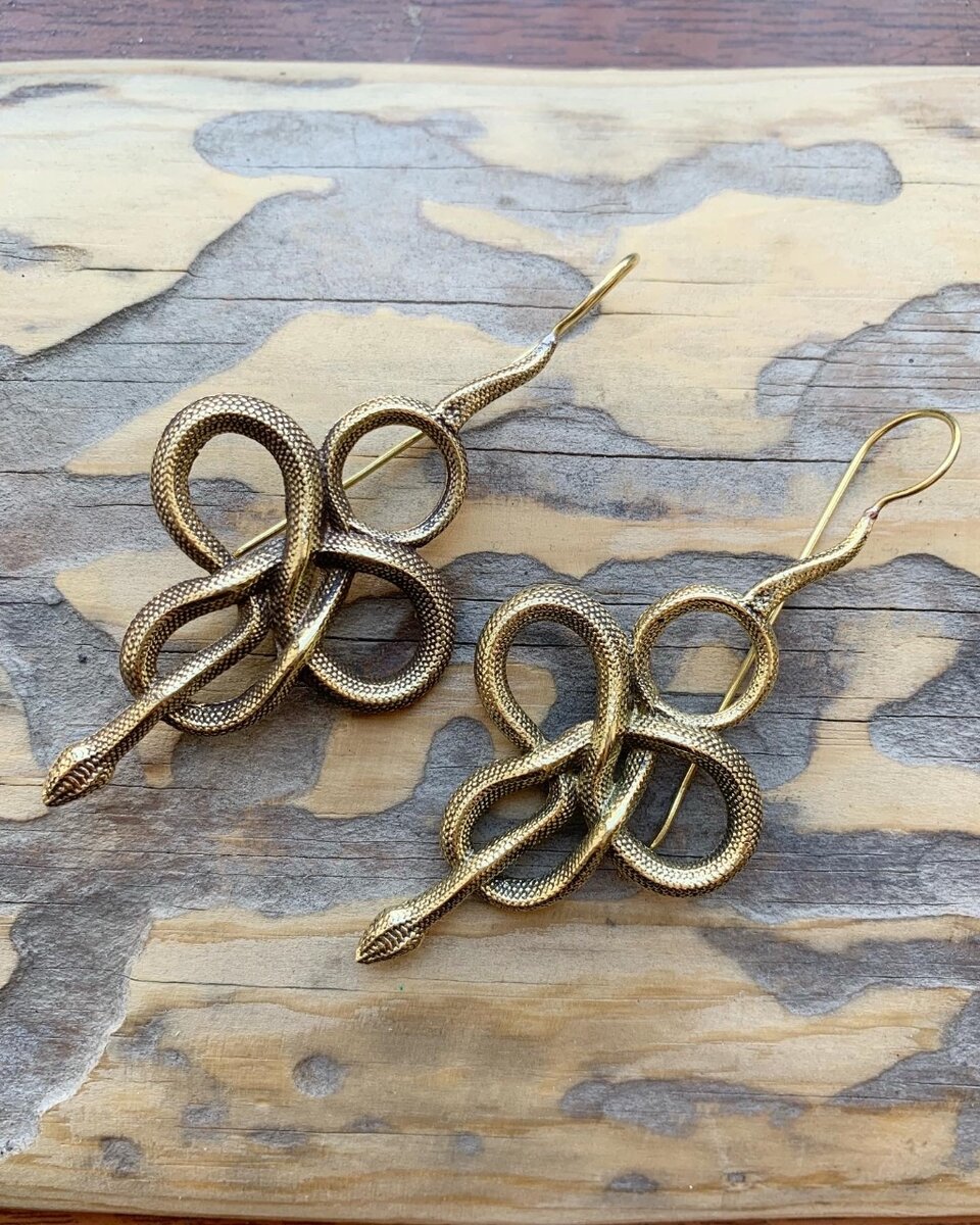 Необычные серьги со змеями, латунь. 1200-1600 с.