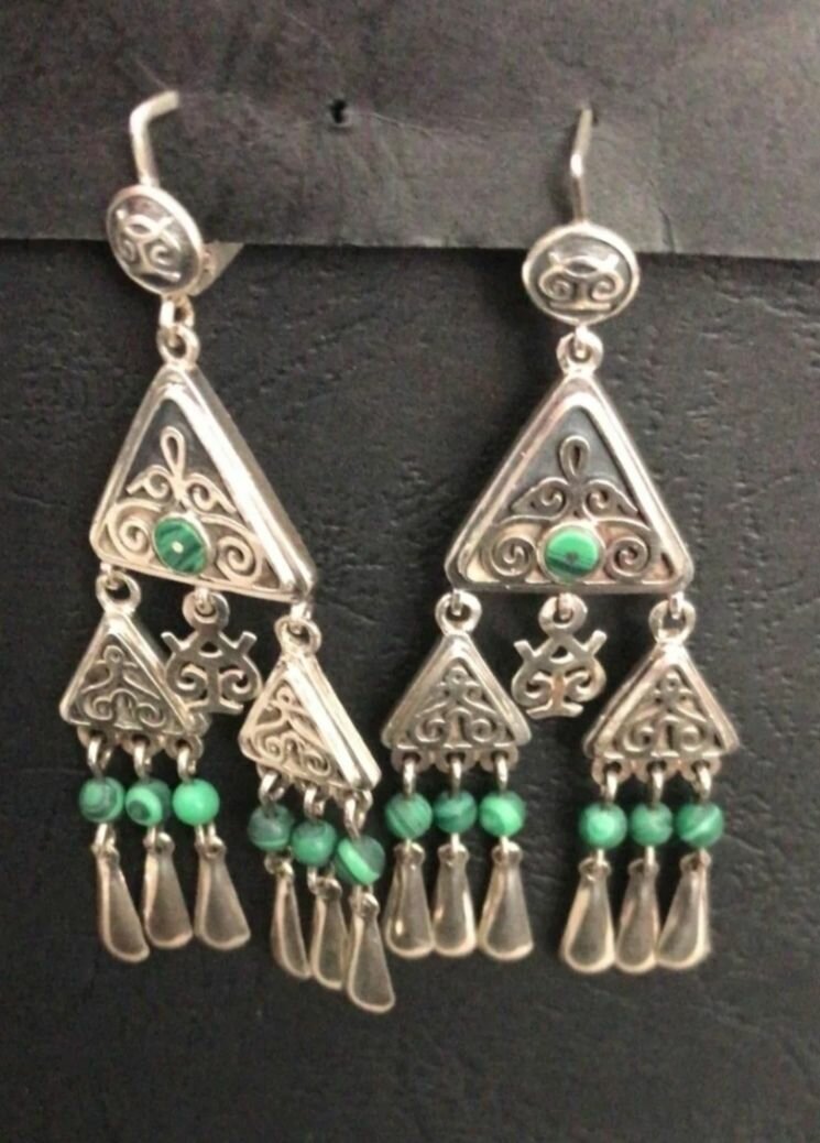 Представляем вам наши **красивые серебряные серьги**, выполненные из серебра высшей пробы. Каждое изделие это не просто украшение, а настоящая история, воплощенная в уникальном дизайне, который отражает национальный колорит и фольклорное наследие Кыргызстана.