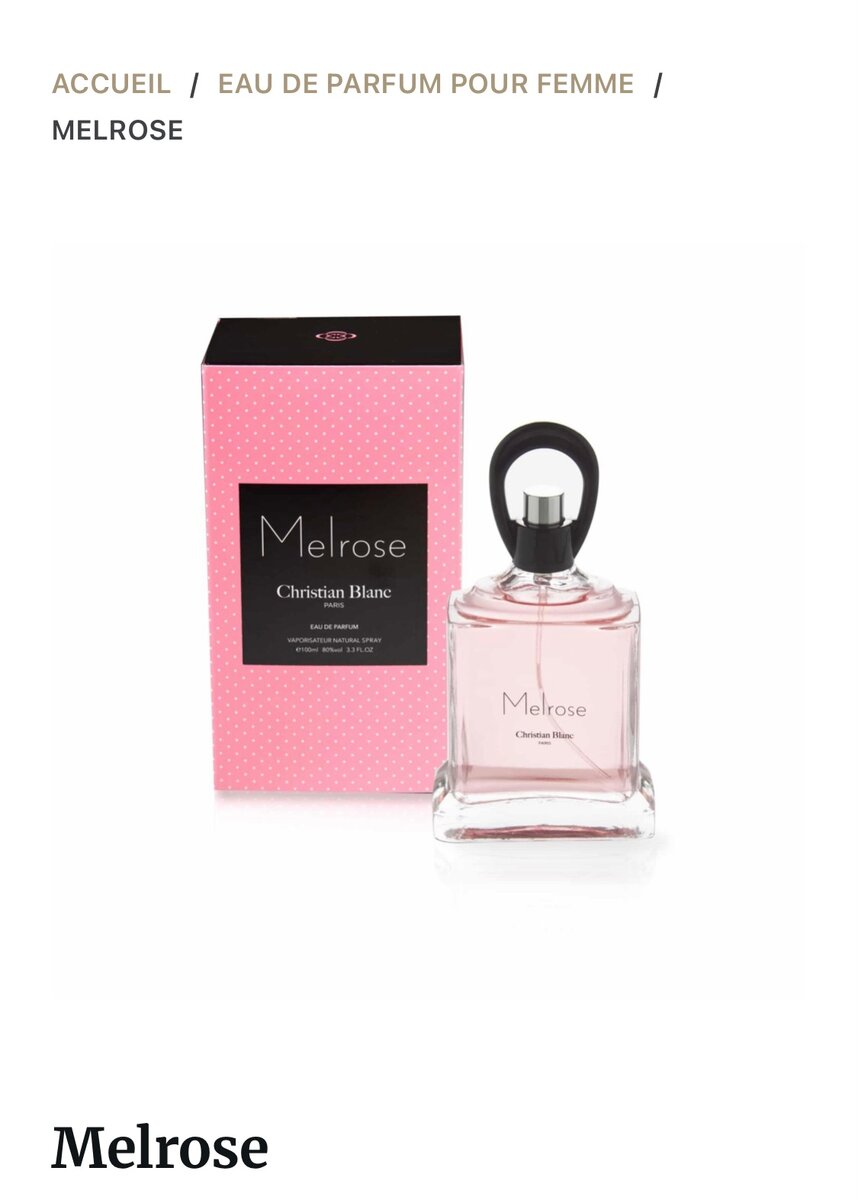 Découvrez Melrose, une eau de parfum envoûtante pour femme au bouquet floral unique. Parfaite pour toutes les occasions, elle révèle une sensualité subtile et élégante.