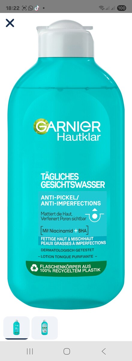Eau visage Garnier anti-imperfections, idéale pour peau grasse. Nettoie et purifie en profondeur, réduisant les boutons pour une peau éclatante. Convient pour usage quotidien.