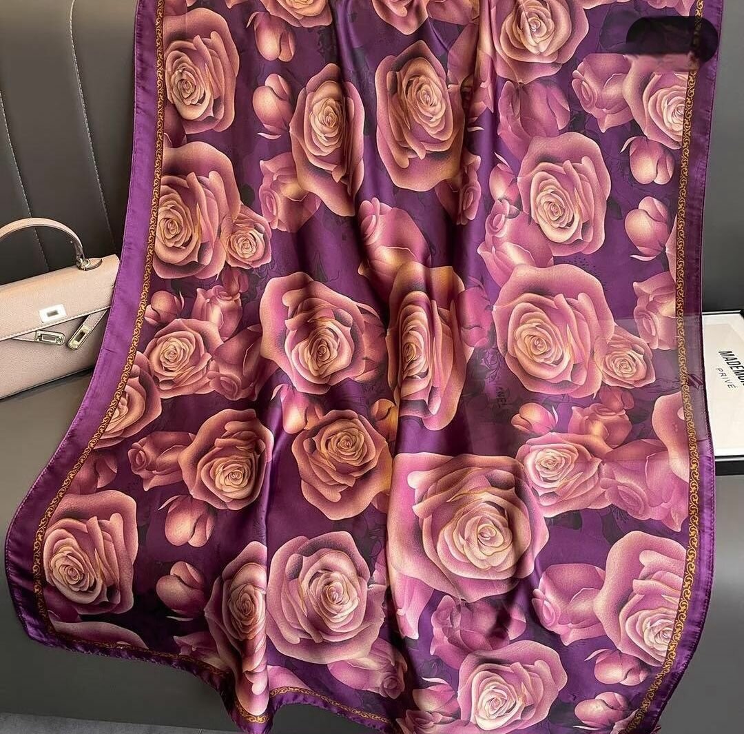 Découvrez l'élégance de notre écharpe en satin avec un motif de roses luxuriant. Parfaite pour ajouter une touche de sophistication à n'importe quelle tenue. Léger et doux au toucher, c'est l'accessoire idéal pour les occasions spéciales ou les sorties quotidiennes. Un choix raffiné pour ceux qui apprécient la mode et le style intemporel.
