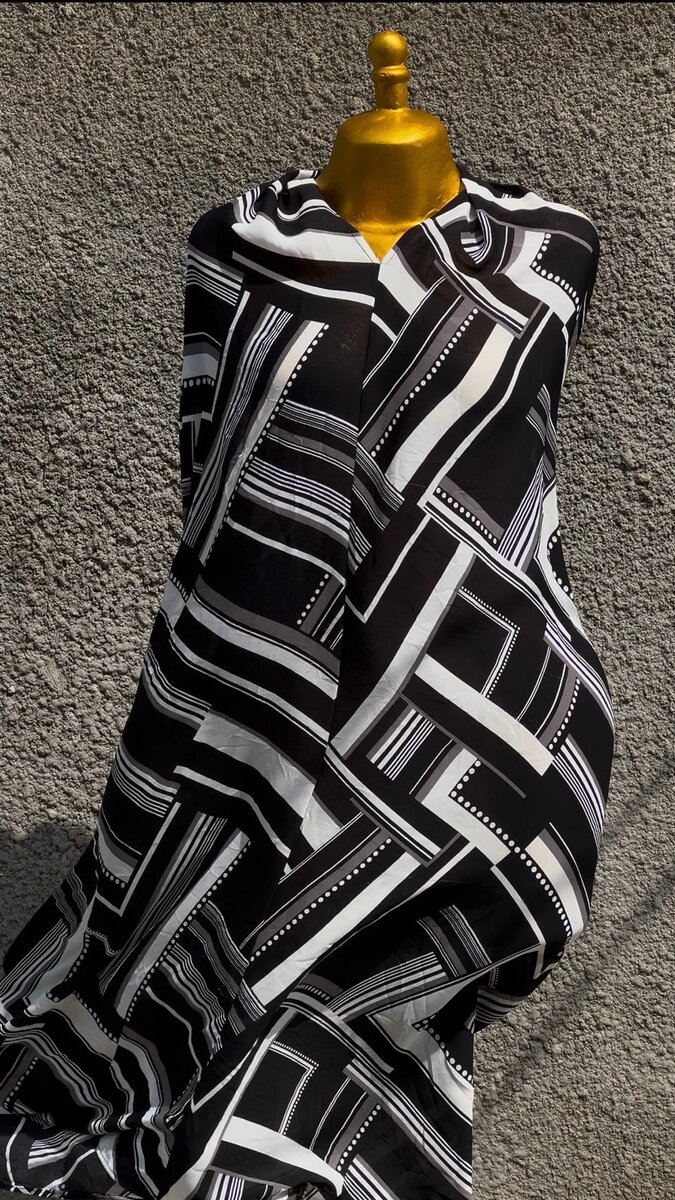 Découvrez notre écharpe à motif géométrique en noir et blanc, parfaite pour ajouter une touche chic à votre tenue. Fabriquée en tissu doux et agréable, cette écharpe est idéale pour toutes les saisons et s'harmonise facilement avec différentes tenues. Un accessoire indispensable pour un look moderne et raffiné.