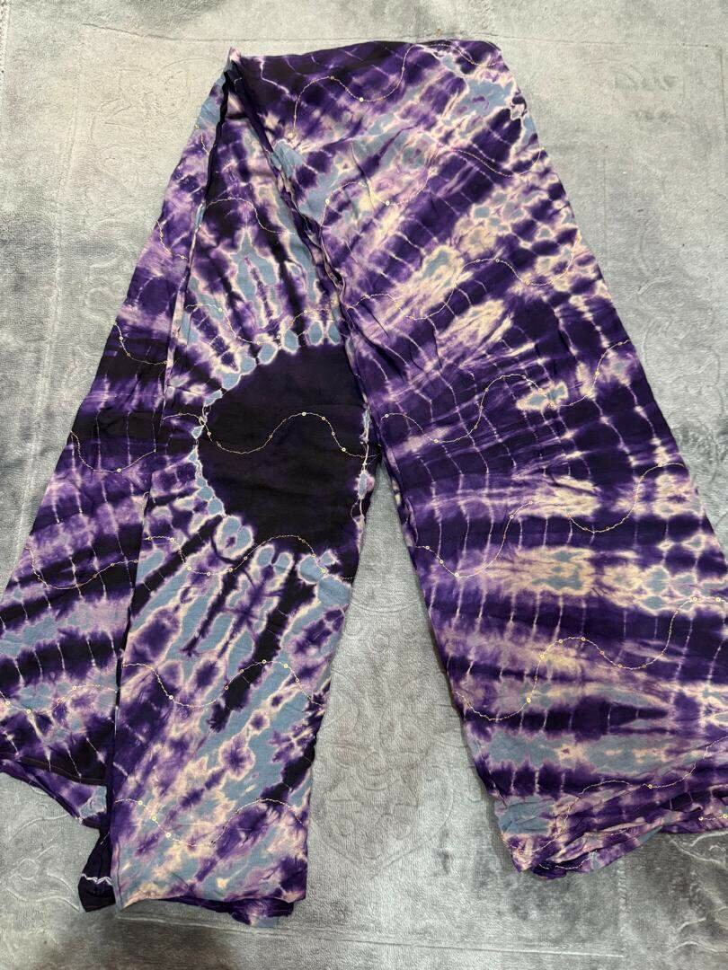 Égayez votre tenue avec cette écharpe tie-dye aux tons violets vibrants ! Douce et légère, elle est idéale pour les saisons intermédiaires. Parfaite pour un look bohème chic.