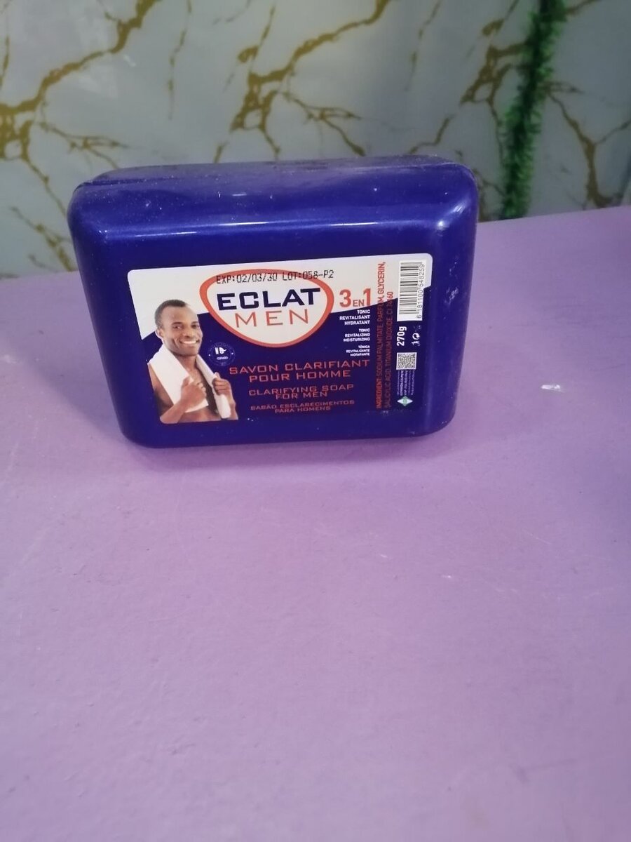 le savonÉclat Men, idéal pour une peau éclatante et saine. Sa formule 3-en-1 purifie, hydrate et éclaircit en douceur. Parfait pour tous les types de peau.