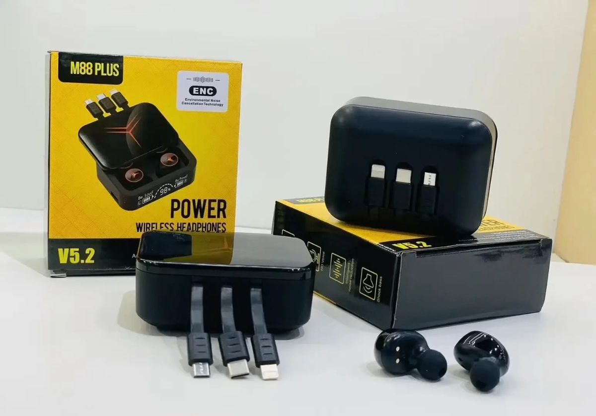 Profitez d'une expérience sonore exceptionnelle avec les écouteurs Bluetooth M88 Plus. Dotés de la technologie de réduction de bruit, ils offrent un son clair et puissant. Idéals pour les déplacements ou le sport, ils sont équipés d'un boîtier de charge pratique avec indicateur de batterie.