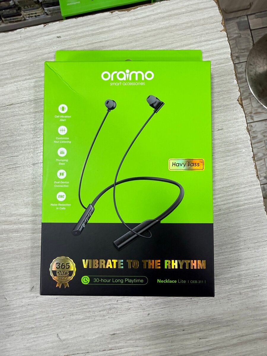 Découvrez les écouteurs Oraimo avec batterie longue durée et basses puissantes. Profitez de 30 heures de musique sans interruption. Parfait pour les amateurs de musique en déplacement.