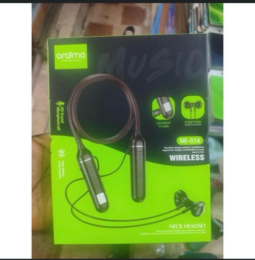 Découvrez les écouteurs Bluetooth Oraimo NE-014, idéals pour une expérience sans fil. Avec carte TF, profitez de votre musique où que vous soyez. Parfait pour le sport ou les trajets quotidiens.