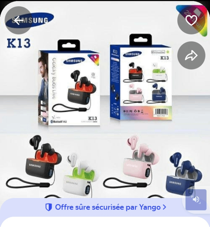 Découvrez les écouteurs Bluetooth Samsung K13 pour une expérience audio sans fil incomparable. Avec un design compact et des couleurs vibrantes, ils offrent un son de haute qualité et un confort d'utilisation. Parfait pour le sport, le voyage ou le quotidien. Compatibilité étendue avec la plupart des appareils Bluetooth.