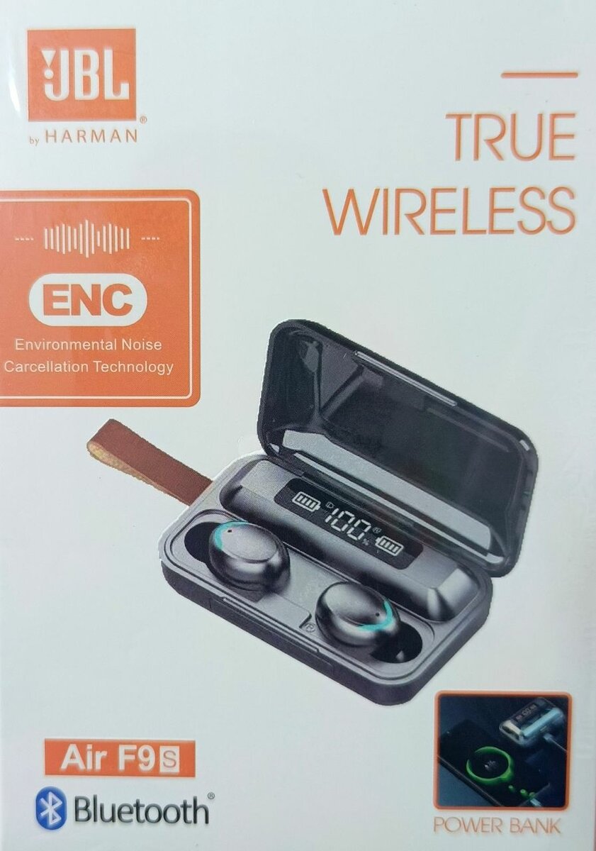 Découvrez les écouteurs JBL Air F9S avec technologie de réduction du bruit et boîtier de charge Power Bank intégré. Parfaits pour un son de haute qualité sans fil, compatible Bluetooth. Idéals pour les déplacements ou le sport, profitez d'une expérience d'écoute ininterrompue.