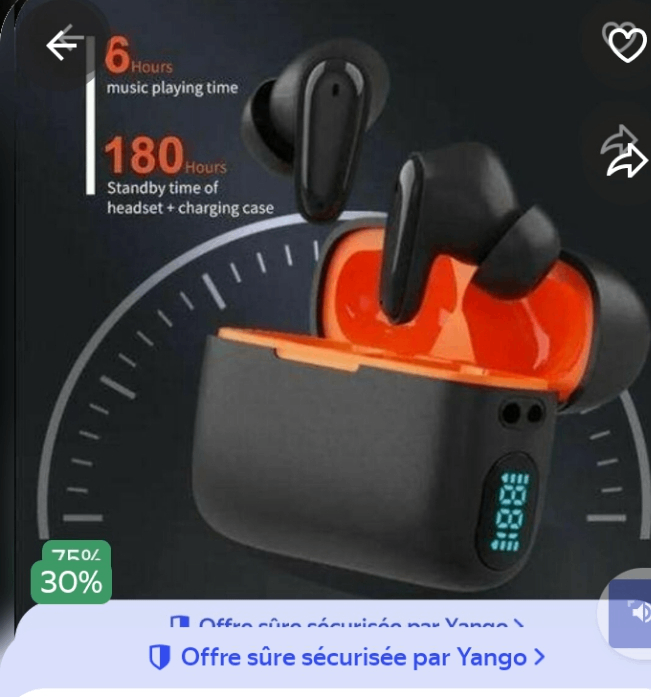Découvrez une expérience sonore supérieure avec ces écouteurs sans fil Bluetooth. Profitez de 6 heures de musique ininterrompue et d'une autonomie de 180 heures en veille avec l'étui. Parfait pour les déplacements, le sport ou le quotidien. Compatible avec tous vos appareils et doté d'un affichage numérique pour une gestion pratique de la batterie.