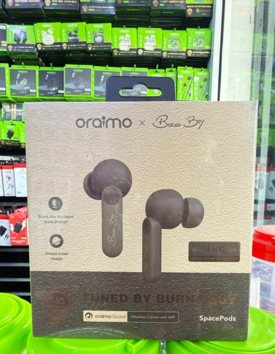 Découvrez les écouteurs Oraimo SpacePods avec réduction active du bruit, conçus en collaboration avec Burna Boy. Profitez d'une expérience sonore supérieure avec un design élégant et confortable, idéal pour écouter de la musique ou passer des appels. Connectivité facile via l'application Oraimo, ces écouteurs sont parfaits pour un son immersif.