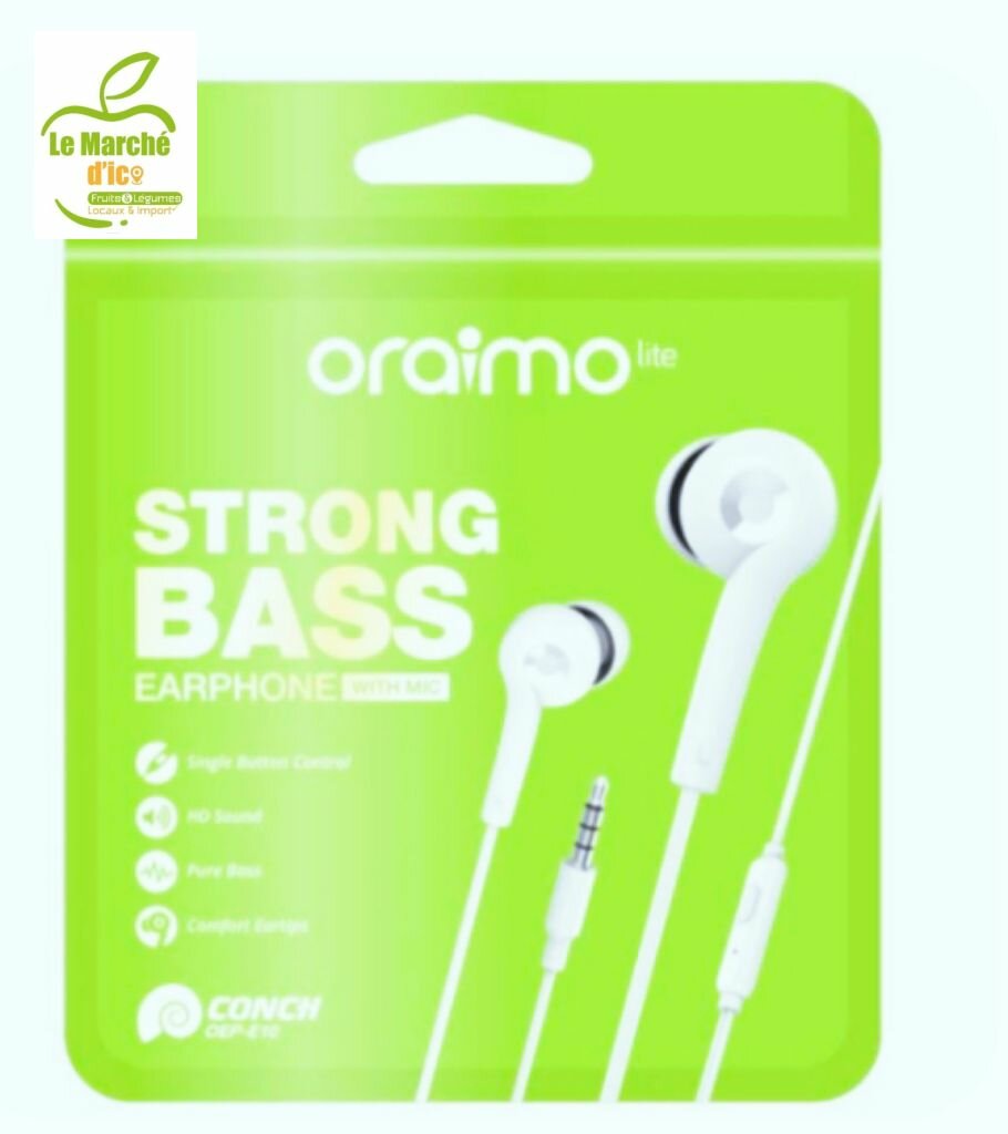 Découvrez les écouteurs Oraimo avec son basse puissant et un design compact. Parfaits pour un son HD clair et un confort optimal. Idéal pour écouter de la musique lors de vos déplacements quotidiens ou séances d'entraînement.
