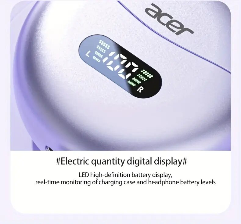 Découvrez les écouteurs sans fil Acer avec affichage LED de batterie, offrant un son cristallin grâce à la technologie AI de réduction de bruit. Conçus pour une utilisation longue durée, ces écouteurs sont idéals pour les appels et la musique avec un chargement rapide dans une élégante boîte. Portez-les partout pour une expérience audio exceptionnelle.