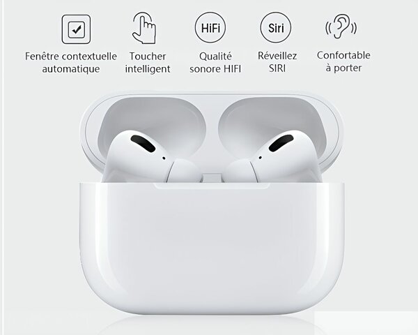 Profitez d'une qualité sonore exceptionnelle avec ces écouteurs sans fil HiFi. Confortables à porter, ils offrent un toucher intelligent et l'assistance de Siri. Idéals pour vos journées actives.