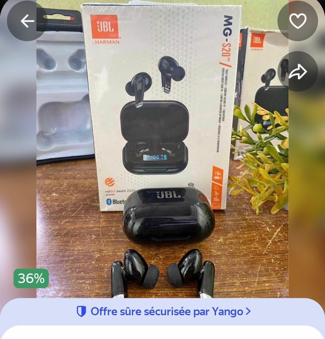 Profitez d'un son clair avec ces écouteurs sans fil JBL MG-S20. Idéal pour écouter de la musique ou passer des appels, ils offrent une excellente autonomie et sont faciles à transporter grâce à leur étui compact. Parfait pour une utilisation quotidienne.