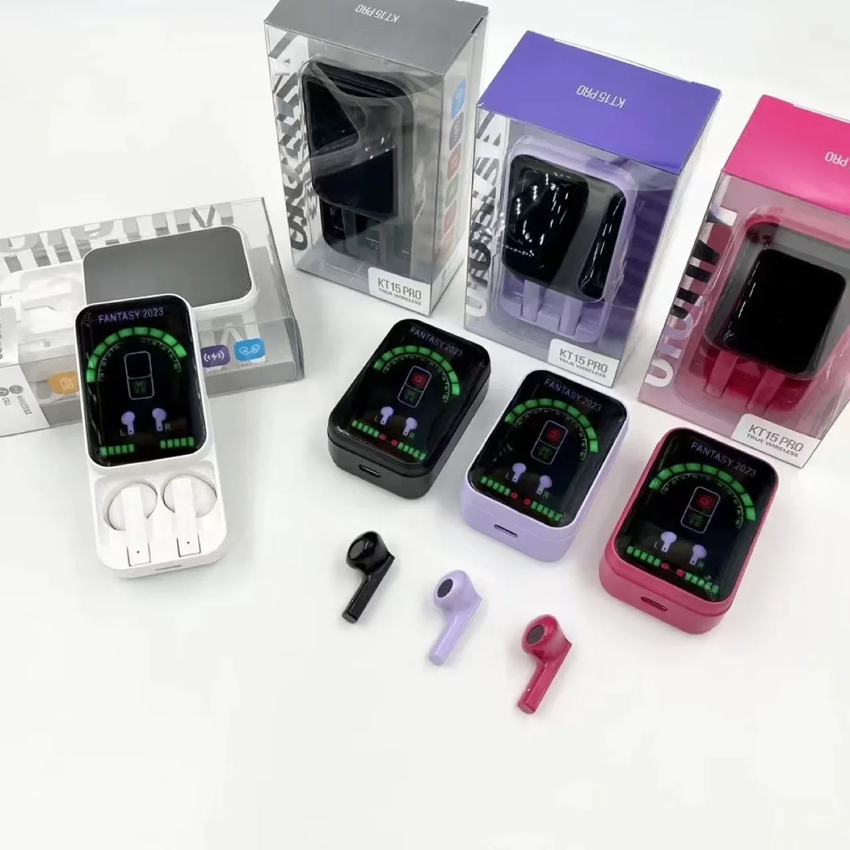 Découvrez les écouteurs sans fil KT15 Pro, parfaits pour une expérience audio exceptionnelle. Dotés d'un écran LED pour suivre le niveau de batterie, ils offrent un son clair et puissant. Idéal pour le sport ou les déplacements. Design compact et élégant.