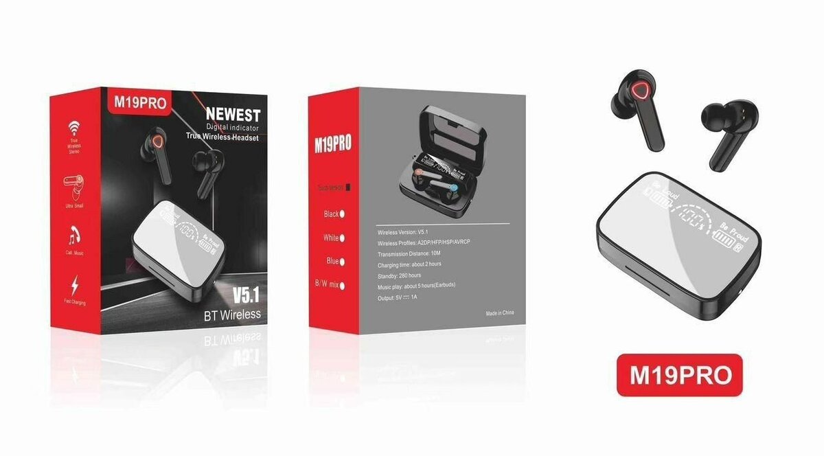 Découvrez les écouteurs sans fil M19Pro avec Bluetooth 5.1 offrant un son clair et puissant. Design moderne avec affichage LED pour l'état de charge. Parfait pour les appels ou la musique, idéal pour la vie quotidienne ou le sport. Optez pour la liberté sans fil!