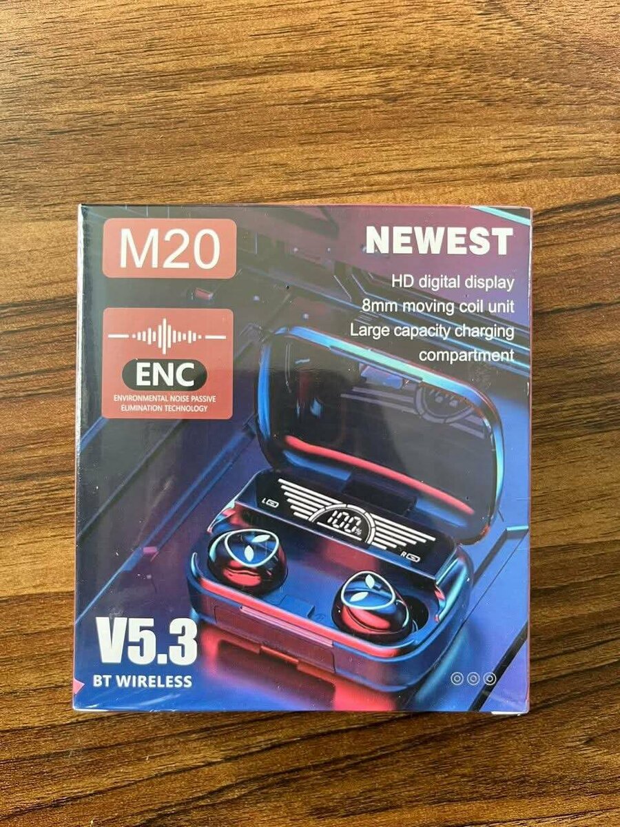 Profitez d'un son exceptionnel avec les écouteurs sans fil M20. Dotés d'un affichage numérique HD et de la technologie ENC pour un son clair, ils sont parfaits pour les appels et la musique. La résistance accrue de leur batterie et leur boîtier de charge large capacité les rendent idéaux pour une utilisation prolongée. Version BT V5.3 pour une connectivité supérieure.