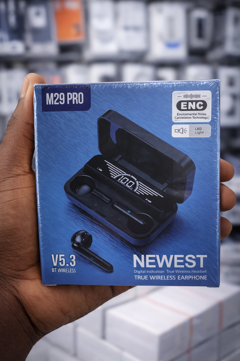 Découvrez les écouteurs sans fil M29 Pro, offrant une technologie Bluetooth 5.3 pour une connexion stable. Profitez d'une réduction de bruit efficace grâce à la technologie ENC. Idéal pour le sport, les voyages ou un usage quotidien, ces écouteurs garantiront une expérience sonore enrichissante. Faciles à utiliser et confortables à porter, c'est l'accessoire parfait pour tous ceux qui cherchent à allier style et performance