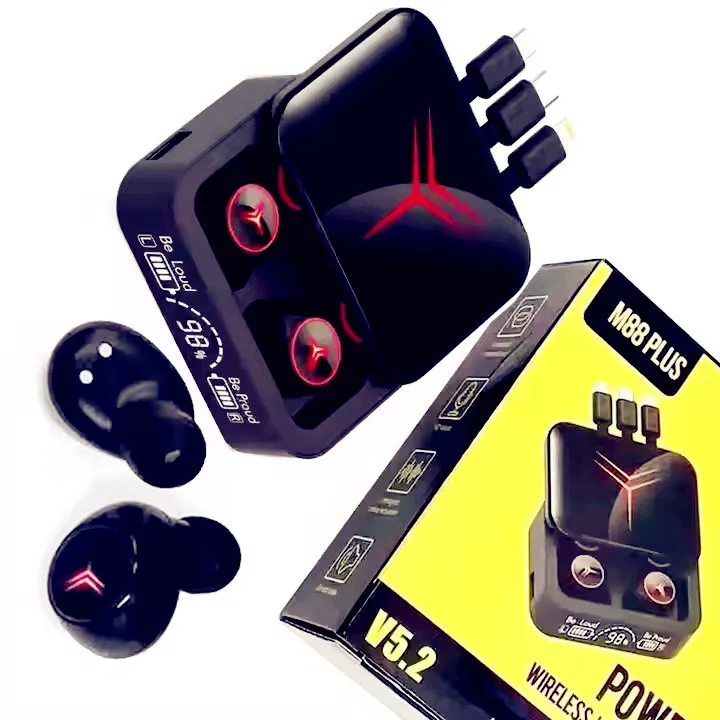 Profitez d'un son immersif avec les écouteurs sans fil M88 Plus. Version 5.2 pour une connexion stable. Boîtier de charge pratique avec écran LED. Idéal pour la musique et les appels.