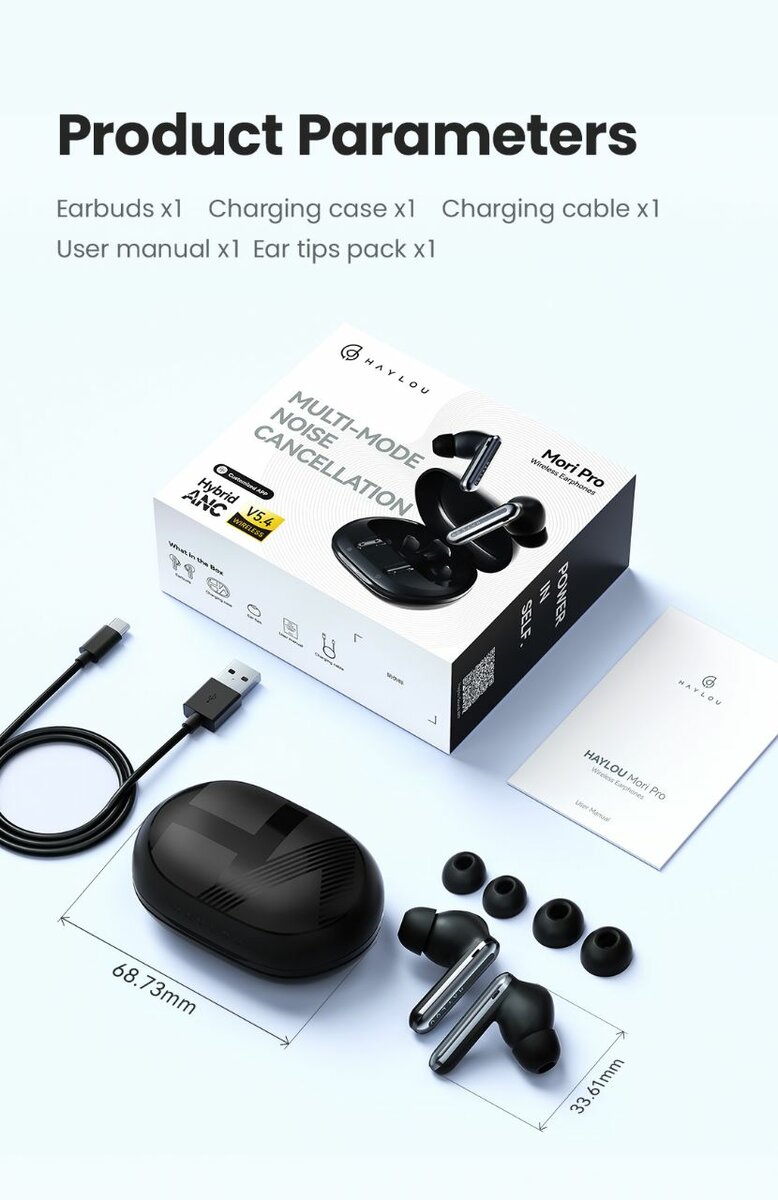 Découvrez les écouteurs sans fil Mifo Pro avec annulation active du bruit. Idéal pour écouter de la musique ou passer des appels, ils offrent un son clair et immersive. Comprend un boîtier de charge compact, des embouts de différentes tailles pour un confort optimal et un câble USB pour une recharge facile. Parfait pour les déplacements ou le sport, leur design élégant et leur fonctionnalités avancées sont le choix parfait pour les audiophiles modernes.