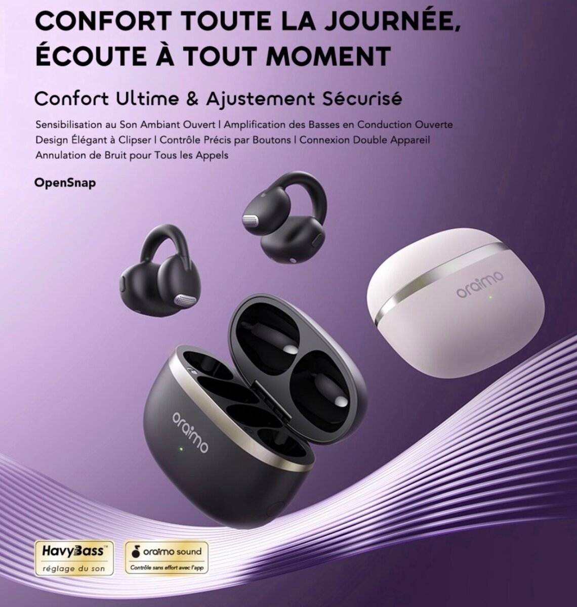 Découvrez le confort ultime avec les écouteurs sans fil Oraimo. Design élégant, son de haute qualité avec basses puissantes, et autonomie jusqu'à 26 heures. Parfaits pour la musique et les appels avec réduction de bruit efficace. Adaptés pour une utilisation quotidienne, à la maison ou en déplacement.