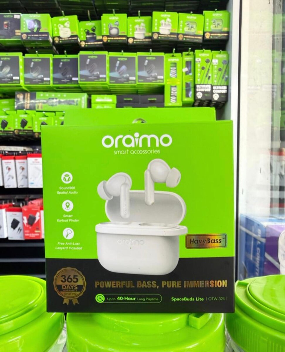 Découvrez le confort des écouteurs sans fil Oraimo SpaceBuds Lite. Profitez d'un son puissant avec une immersion totale grâce à la technologie HavyBass™. Jusqu'à 40 heures d'autonomie pour une expérience prolongée. Idéal pour les mélomanes et les professionnels en déplacement.