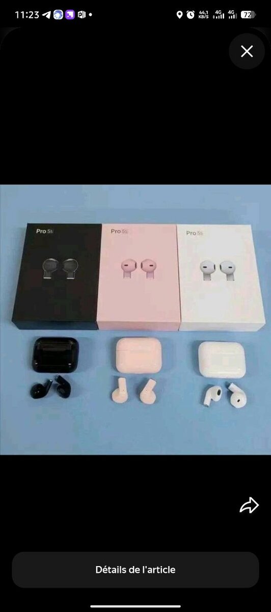 Découvrez les écouteurs sans fil Pro 5s : qualité sonore exceptionnelle, design élégant et compatibilité universelle. Avec leur boîtier de charge pratique, profitez d'un son clair et net partout où vous allez. Idéal pour le sport, le bureau ou à la maison. Passez au niveau supérieur avec Pro 5s !