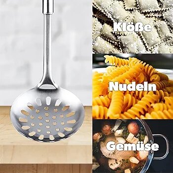 Écumoire en acier inoxydable idéale pour égoutter pâtes, légumes, et boulettes. Durable et résistante à la chaleur, elle est un outil essentiel pour toute cuisine, garantissant une cuisson parfaite sans éclaboussures. Confortable et pratique pour un usage quotidien.