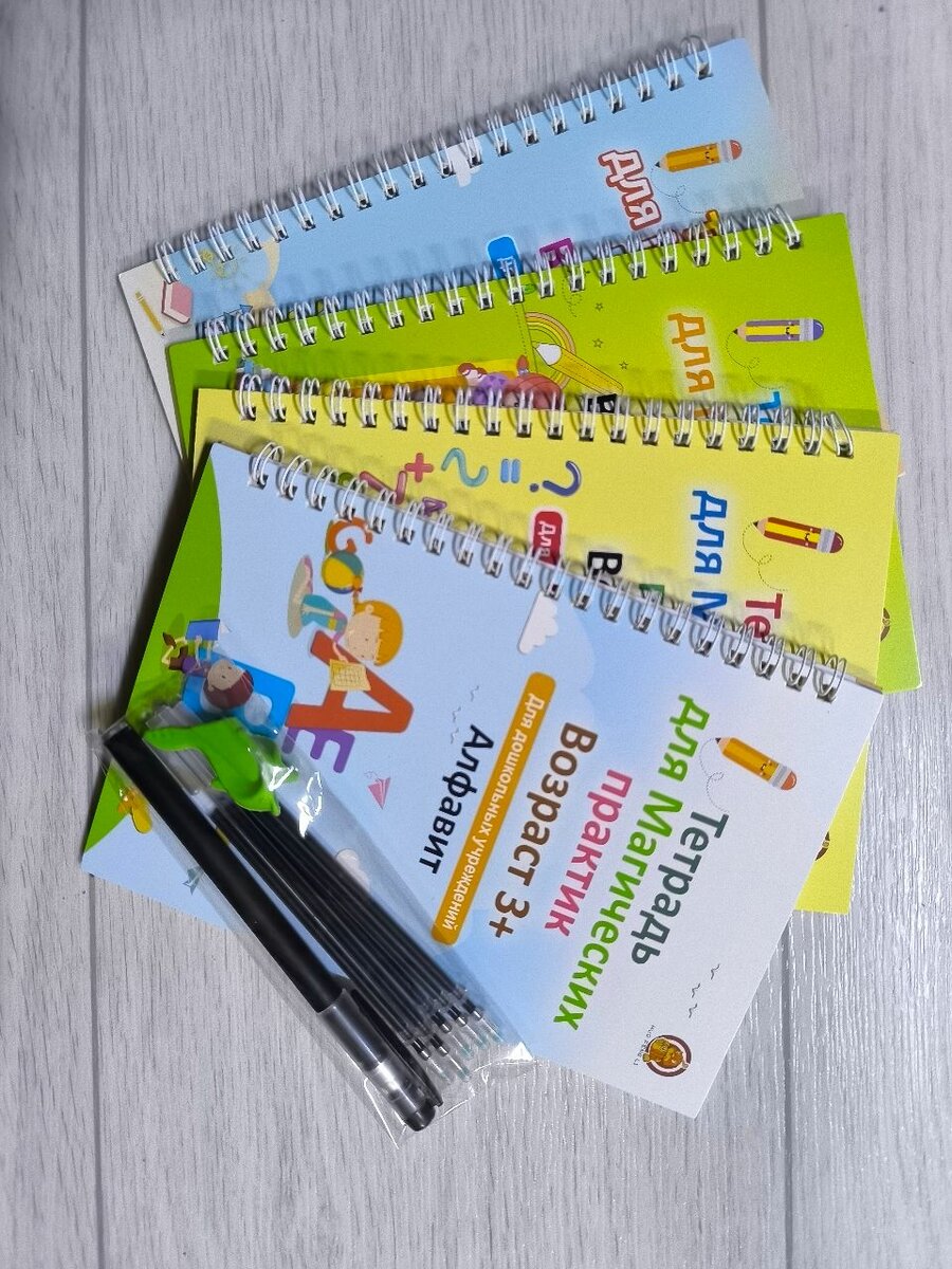 Магический тетрадь в комплекте идёт 4тетради,1ручка, 6запас и держатель ручки для детей