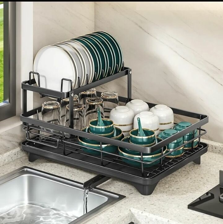 Optimisez votre espace cuisine avec cet égouttoir à vaisselle moderne. Design élégant en métal noir robuste, idéal pour organiser les assiettes, verres et couverts. Parfait pour un séchage rapide et un comptoir ordonné. Un choix incontournable pour chaque foyer!