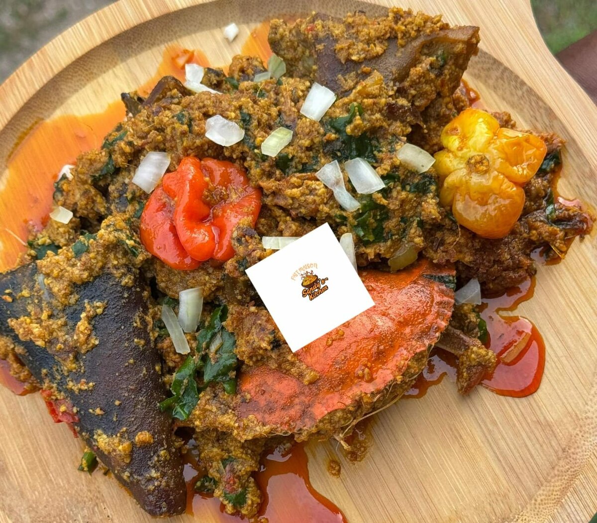 Savourez notre délicieux plat de Egusi Soup zux saveurs authentiques. Riche en poisson fumé, crabes et kplo, ce plat ravira vos papilles avec ses saveurs riches et intenses. Essayez-le pour une expérience culinaire unique et mémorable. Proposé avec du Akoumé, placali ou Eba. Disponible les samedis. Commandez la veille SVP