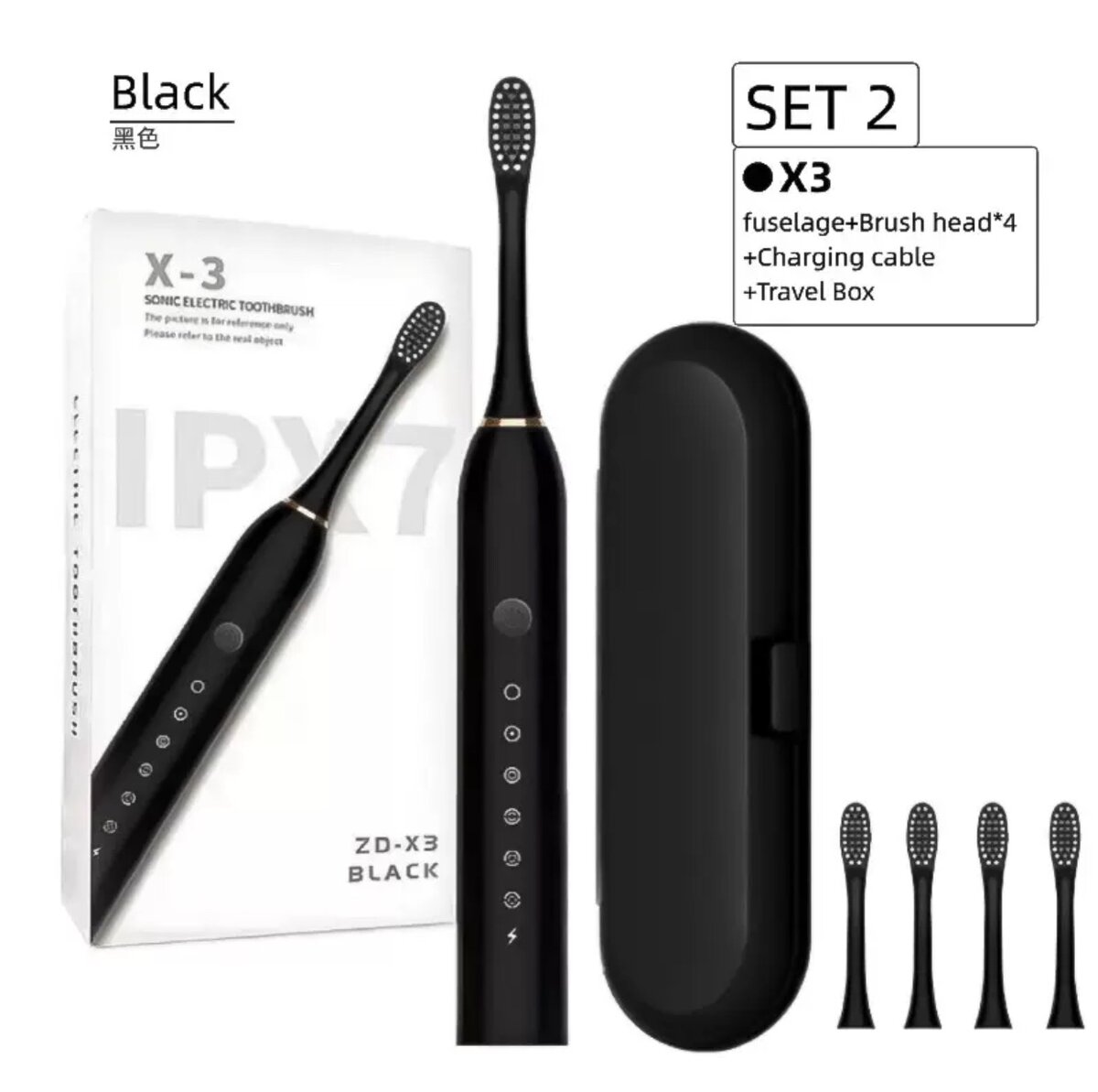 Electric Toothbrush with 3 heads. Charging cable and a trave